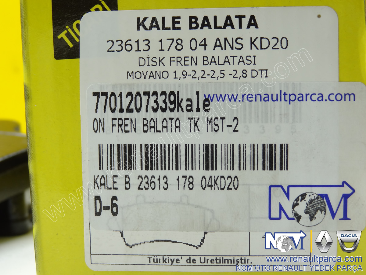 Ön Fren Balata Takımı Renault Master 2 - Kale 7701207339 Web sitemizde ürünleri online sipariş verebilirsiniz. 7701207339kale